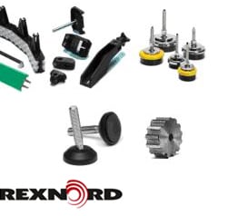 Rails de guidage, guides de rouleaux, attaches pour rails de guidage, supports pour rails de guidage et pinces de fixation en plastique ou acier inoxydable.